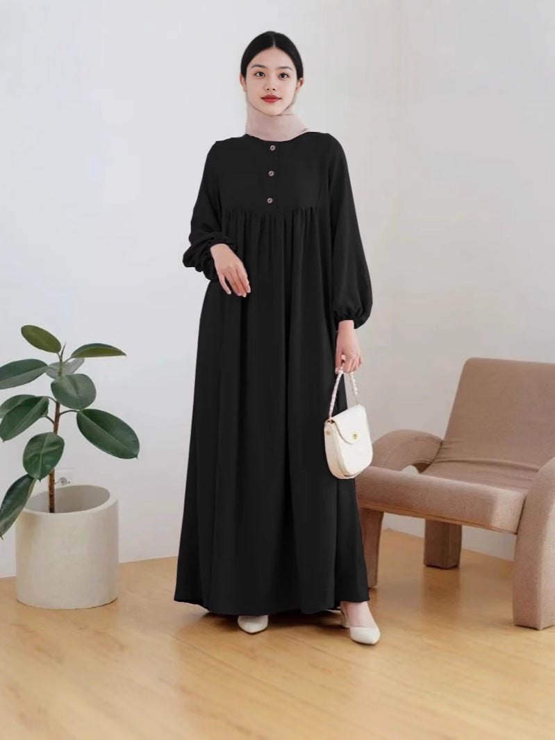 Cross-Border Muslim Women's Dress , Fashionable Casual Puff Sleeves, Simple Loose Solid Color Dress.